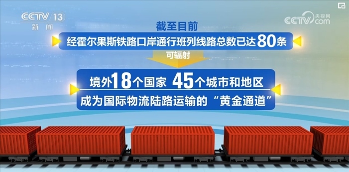 自2016年開出首趟中歐班列以來,經(jīng)霍爾果斯海關(guān)監(jiān)管的中歐(中亞)班列總量已超過3.5萬列。截至目前,經(jīng)霍爾果斯鐵路口岸通行班列線路總數(shù)已達(dá)80條,可輻射境外18個(gè)國家、45個(gè)城市和地區(qū),成為國際物流陸路運(yùn)輸?shù)摹包S金通道”。
