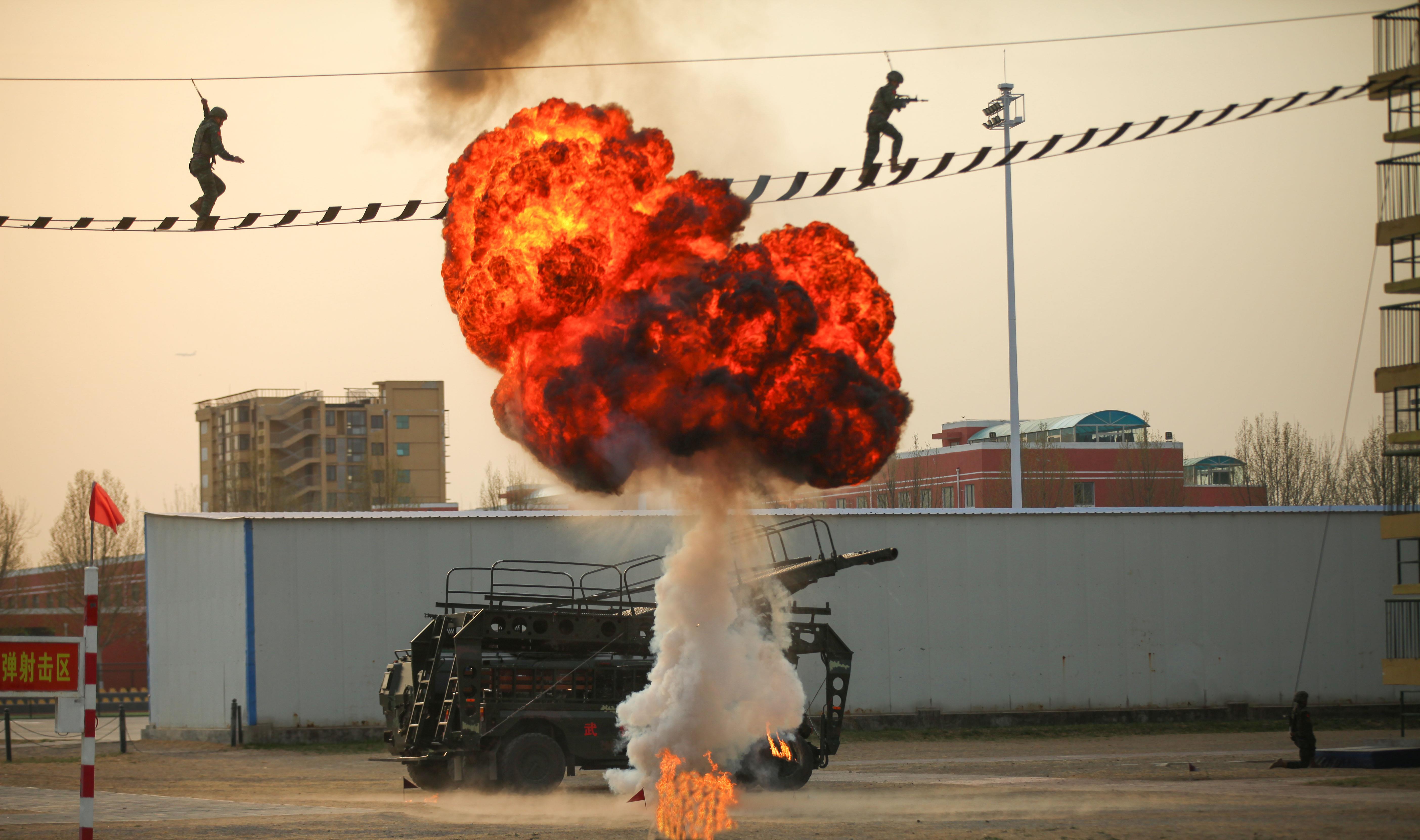 硝煙、炮火聲中,特戰(zhàn)隊員通過云梯、鋼索等,快速抵達任務區(qū)。在無人機和突擊裝備加持下,實戰(zhàn)化訓練的攻擊體系更加立體,火力打擊更加精準,指揮協同更加集成。在不遠處,“從這里走向戰(zhàn)場”的大字,熠熠生輝。