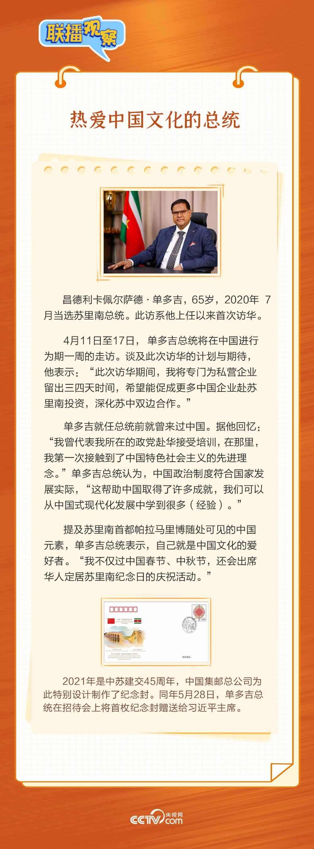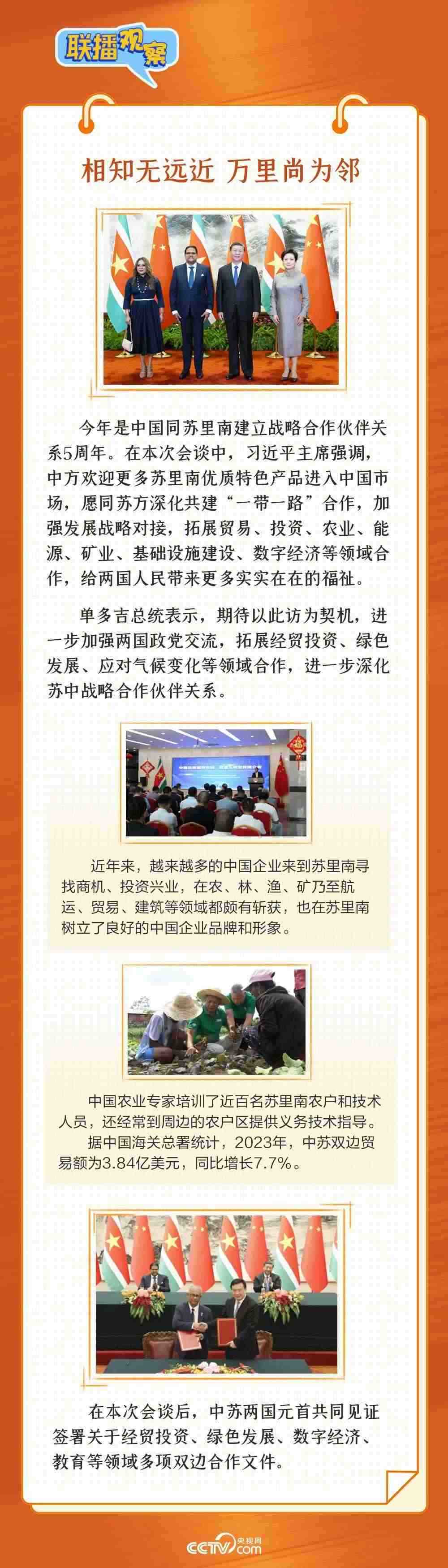 此訪是單多吉總統(tǒng)上任以來首次訪華,這次會談對兩國關(guān)系發(fā)展具有怎樣的重要意義?蘇里南又是怎樣的一個(gè)國度?《聯(lián)播觀察》邀您一同了解。