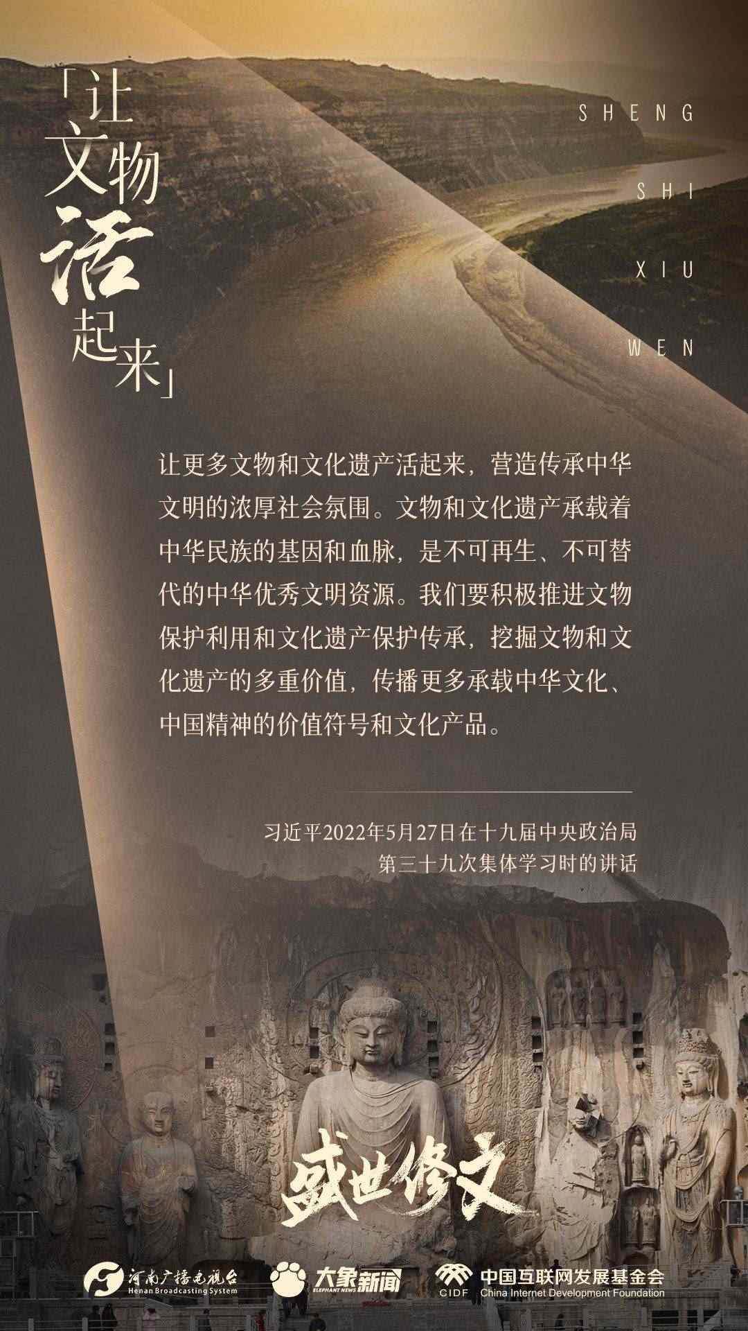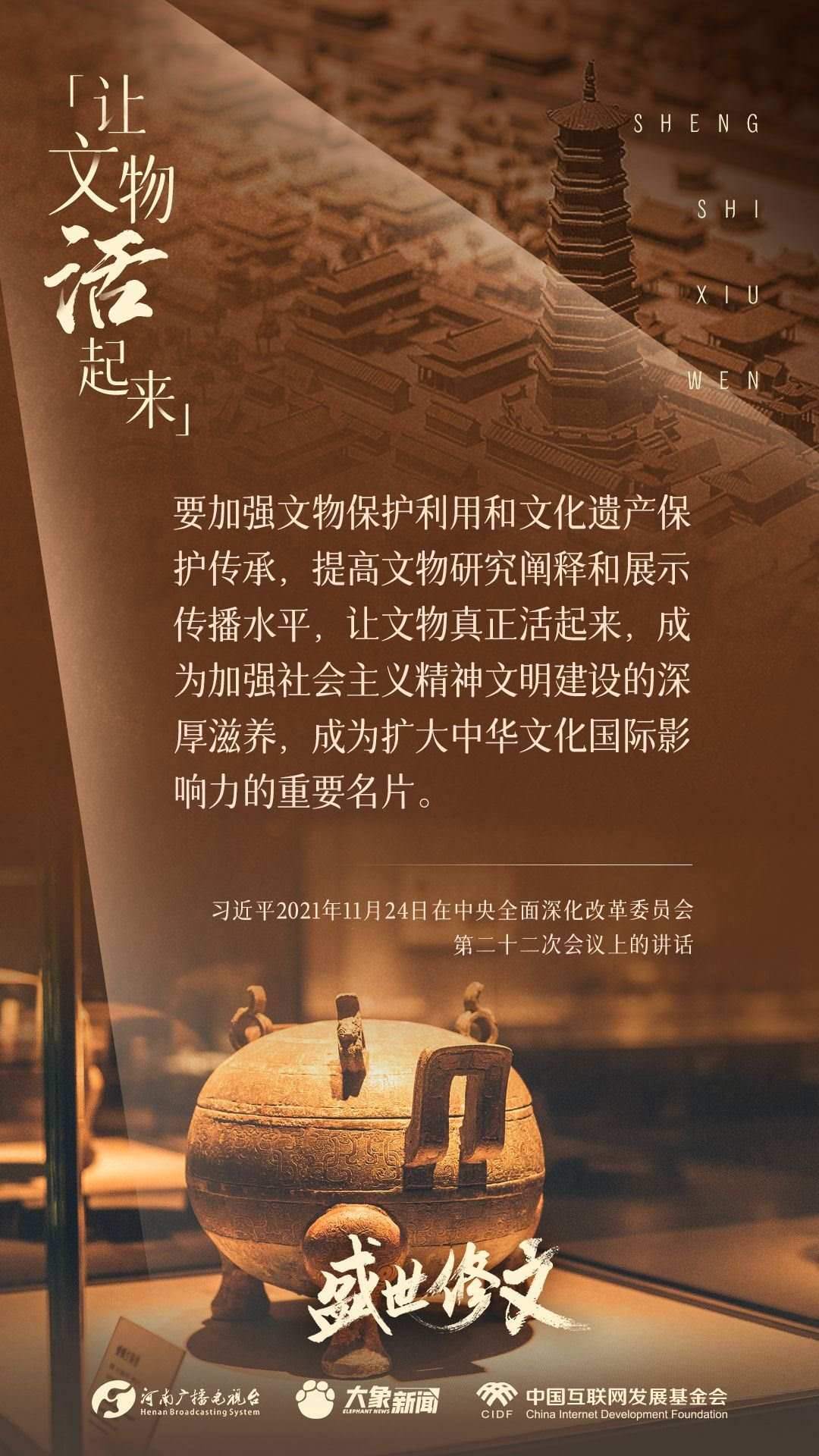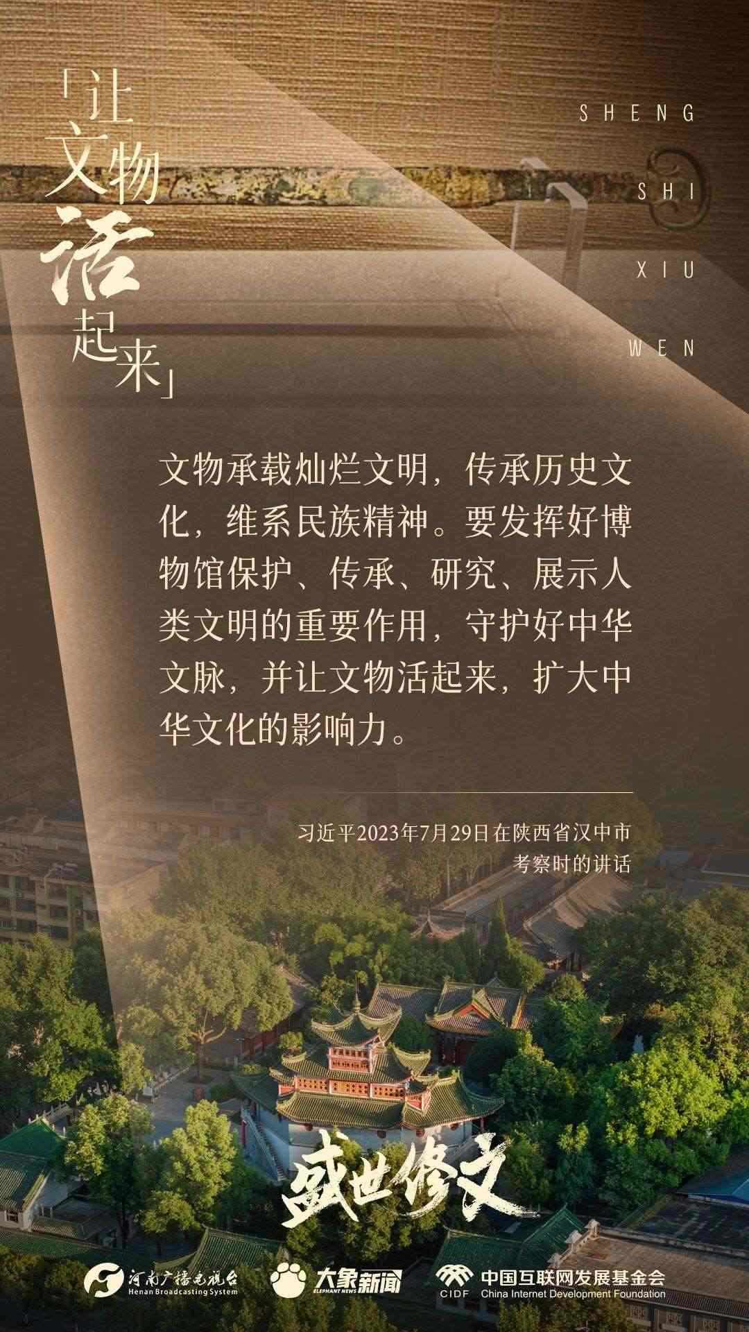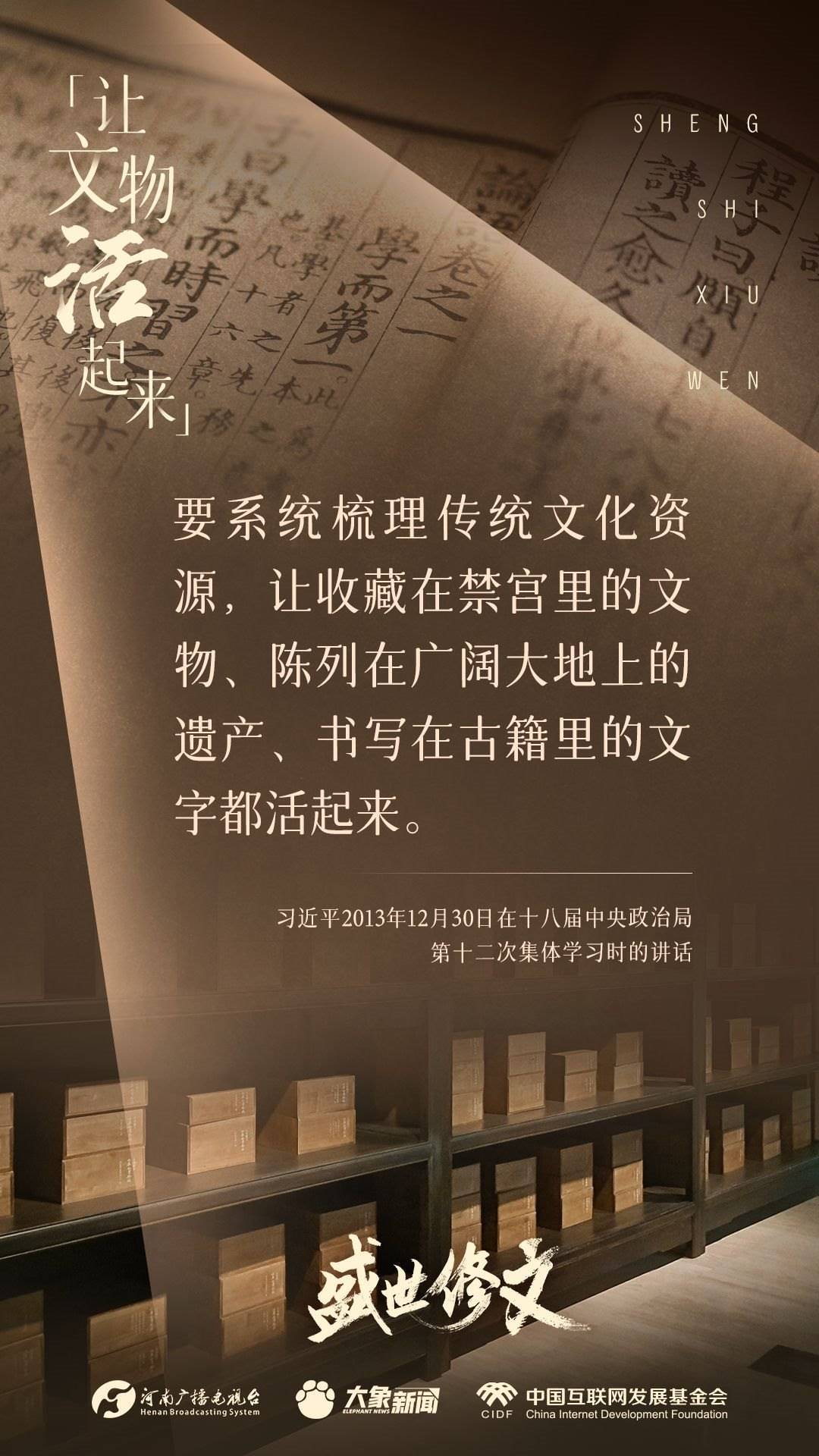 今天推出:習(xí)近平文化思想金句之《盛世修文|讓文物活起來》
