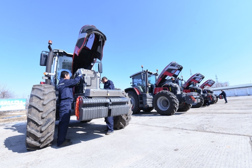 2024年3月22日,在北大荒集團(tuán)建設(shè)農(nóng)場有限公司,農(nóng)機(jī)手對新引進(jìn)的拖拉機(jī)進(jìn)行調(diào)試。新華社記者 王松 攝