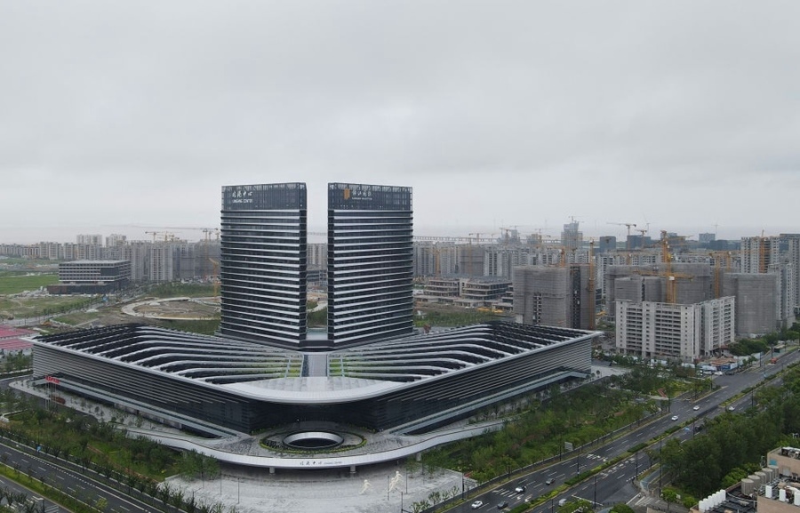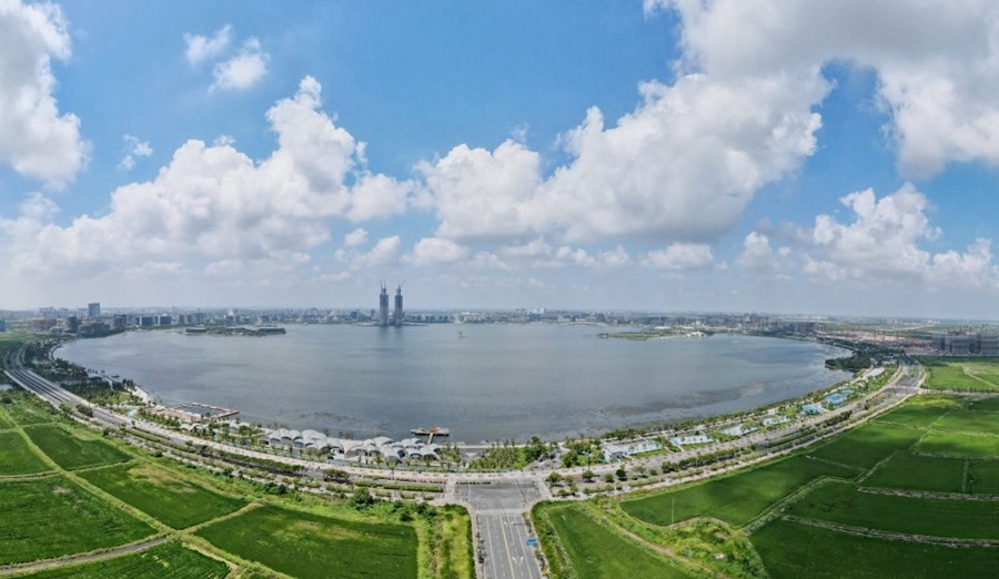 這是中國(guó)(上海)自由貿(mào)易試驗(yàn)區(qū)臨港新片區(qū)滴水湖(無人機(jī)全景照片,2023年9月6日攝)。