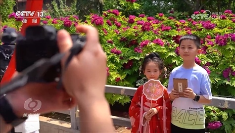 王鑫給女兒買了漂亮的漢服,還配上了牡丹花傘。穿著漢服看牡丹,幾乎成為游客的必選項(xiàng)目。牡丹園里,隨處可見身穿漢服的游人打卡拍照。吃著牡丹造型冰激凌逛文創(chuàng)紀(jì)念品,牡丹鮮切花、牡丹扇面、牡丹造型的飾品讓游客直呼喜愛。