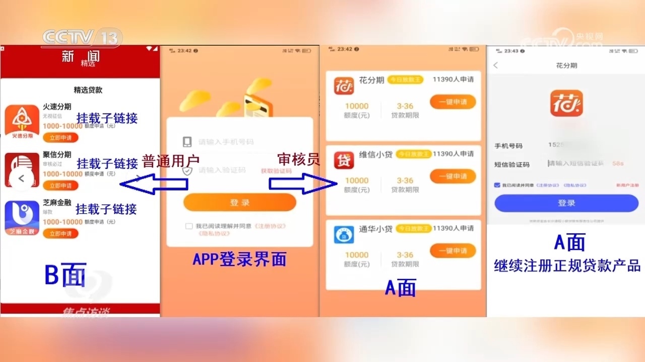 安徽省蕪湖市公安局經(jīng)開區(qū)分局偵查打擊部警務技術(shù)二級主管高陽:“提供審核的都是正規(guī)的貸款產(chǎn)品,點擊以后一步一步看起來都很正規(guī),這樣審核員就會通過,覺得這個APP是正常的,可以在官方應用商城上架。但是普通用戶登錄以后,就會下載新的APP,新的APP都是詐騙APP?!?/p>