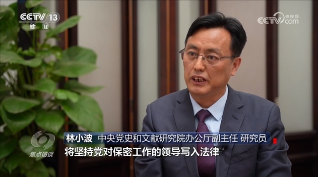 林小波:“這次保密法修訂將堅持黨對保密工作的領導寫入法律,明確了中央保密工作領導機構職責,目的就是要更好發(fā)揮黨管保密的政治優(yōu)勢和組織優(yōu)勢?!?/p>