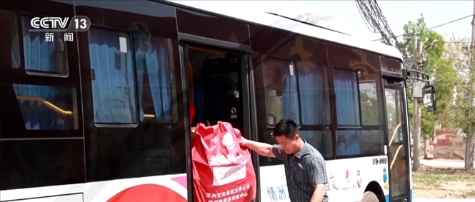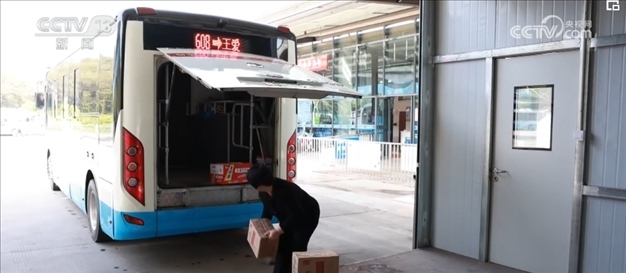 在專(zhuān)門(mén)定制的客貨郵公交車(chē)上,除了快遞包裹,還有一些團(tuán)購(gòu)的生活物資。司機(jī)介紹,因?yàn)榇謇锢先司佣?,到?zhèn)上買(mǎi)東西不方便,手機(jī)團(tuán)購(gòu)生活物資后,公交車(chē)就會(huì)一起帶到各村的集士驛站。