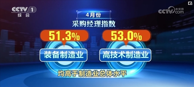 新動(dòng)能繼續(xù)較快擴(kuò)張。4月份,裝備制造業(yè)和高技術(shù)制造業(yè)采購經(jīng)理指數(shù)分別為51.3%和53.0%,均高于制造業(yè)總體水平。