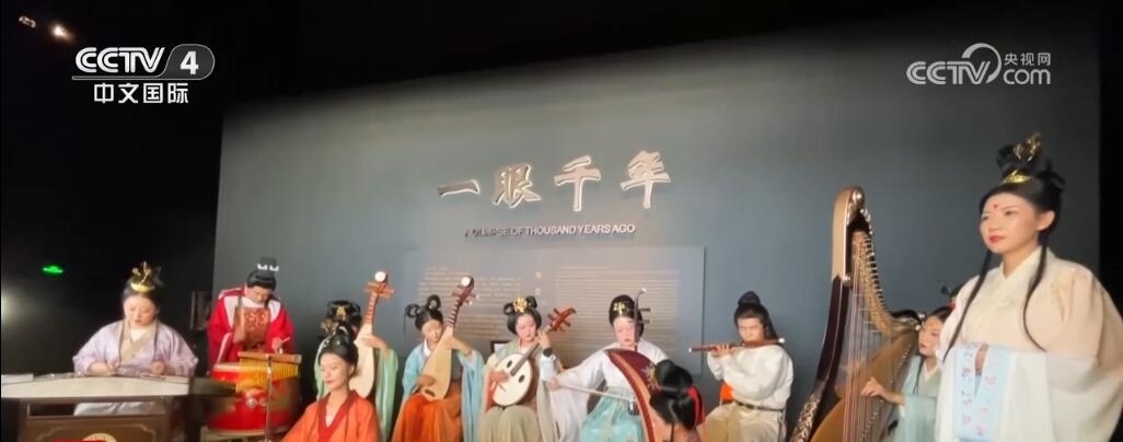在山西太原北齊壁畫博物館,一場“文物”和“音樂”、“傳承”和“創(chuàng)新”的音樂會(huì)正在上演。樂師用古琴、琵琶、箜篌、笛子等民族樂器演繹出了《一眼千年·夢回北齊》,將北齊時(shí)期武安王徐顯秀墓室中的《夫婦宴飲圖》壁畫中的樂隊(duì)場景完美呈現(xiàn)。而在互動(dòng)體驗(yàn)區(qū),觀眾撥動(dòng)電子屏上的琴弦,就可以和投影墻上的樂伎共彈一曲。