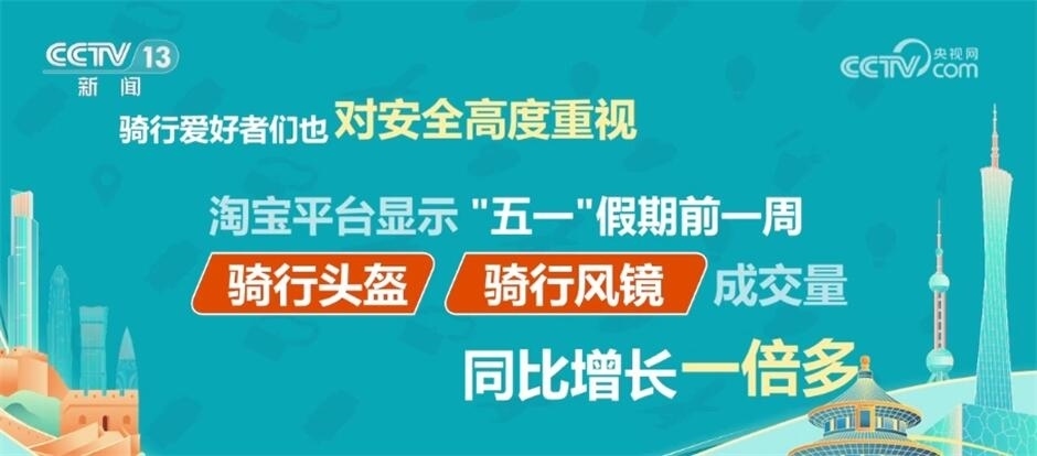 京東數(shù)據(jù)顯示,“五一”前半個(gè)月,公路自行車(chē)和電助力自行車(chē)銷(xiāo)售額的增幅最大,同比增長(zhǎng)了兩倍多。騎行服、騎行穿戴裝備、自行車(chē)配件的銷(xiāo)售也同比增加一倍多。騎行愛(ài)好者們也對(duì)安全高度重視,淘寶平臺(tái)顯示,“五一”假期前一周,騎行頭盔和騎行風(fēng)鏡的成交量也同比增長(zhǎng)一倍多。