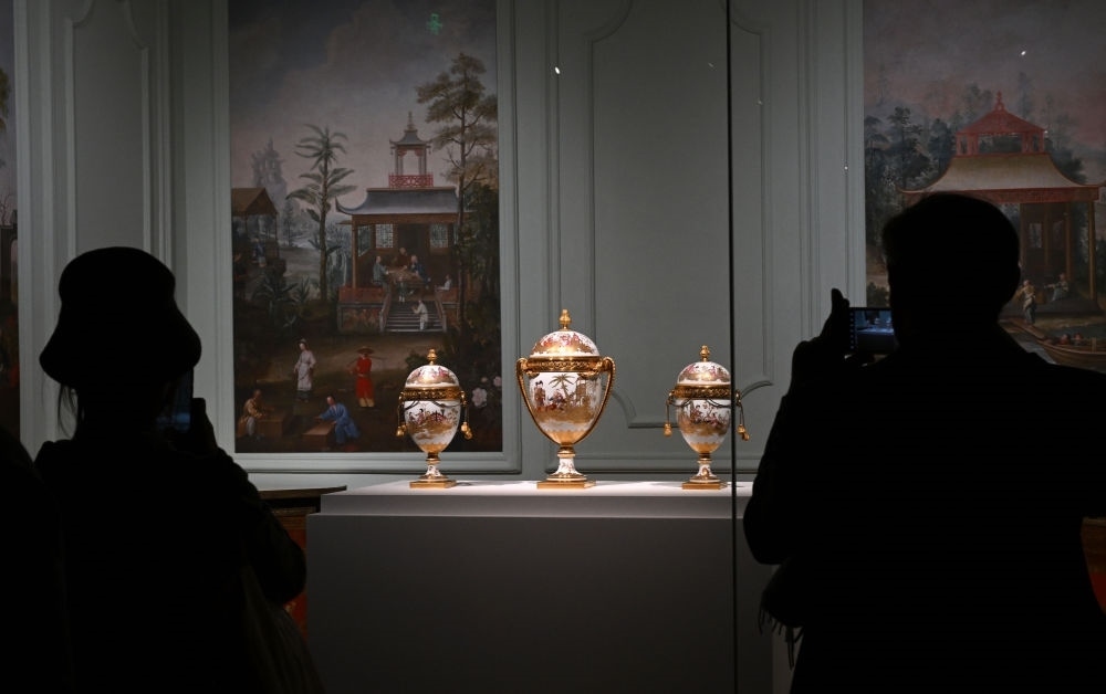 2024年4月1日,觀眾在北京故宮參觀“紫禁城與凡爾賽宮——17、18世紀(jì)的中法交往”展覽。新華社記者 金良快 攝