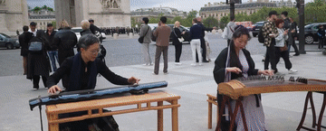 凱旋門下,神奇的一幕發(fā)生了,中國藝術(shù)家和法國軍樂隊同框演奏,巴黎街頭同時回蕩著中法兩國的音樂聲。