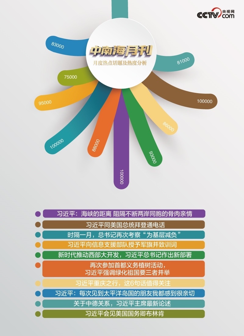 央視網(wǎng)“智聞”系統(tǒng)提取分析2024年4月全網(wǎng)時政新聞熱點顯示,“時隔一月,總書記再次考察‘為基層減負’”“習近平向信息支援部隊授予軍旗并致訓詞”“習近平同美國總統(tǒng)拜登通電話”等話題備受關(guān)注。