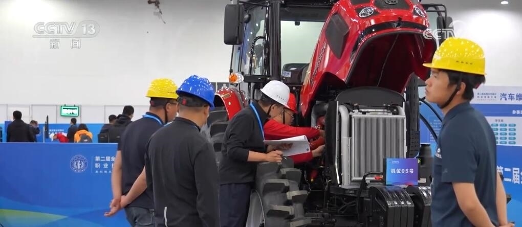 在農(nóng)機修理項目比賽現(xiàn)場,選手們面對的都是最新的智能化設備,增加了挑戰(zhàn)難度。