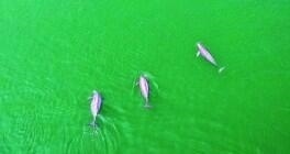 第二天上午,我們將兩頭江豚從故道運(yùn)送到長江干流釋放。經(jīng)過1周的無線電監(jiān)測、聲學(xué)監(jiān)測和無人機(jī)影像觀察,我們確認(rèn)它們在干流生活正常,并與野外江豚相聚。