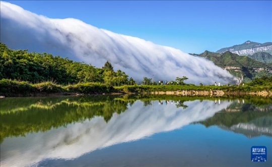 重慶市南川區(qū)金佛山東麓出現(xiàn)云瀑景觀,蒸騰的云霧順著山勢(shì)飛流而下,吸引眾多游客前來觀瀑打卡。?