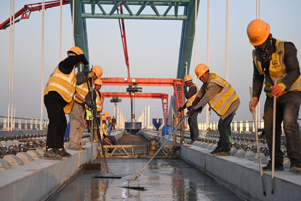 2024年3月20日,中鐵三局建設(shè)者在滬蘇湖鐵路東苕溪特大橋上施工。滬蘇湖鐵路起自上海虹橋站,途經(jīng)江蘇省蘇州市,終至浙江省湖州市湖州站。項(xiàng)目建成運(yùn)營(yíng)后,將進(jìn)一步完善區(qū)域路網(wǎng)布局,促進(jìn)沿線(xiàn)經(jīng)濟(jì)社會(huì)發(fā)展和長(zhǎng)三角一體化高質(zhì)量發(fā)展。新華社記者 黃宗治 攝