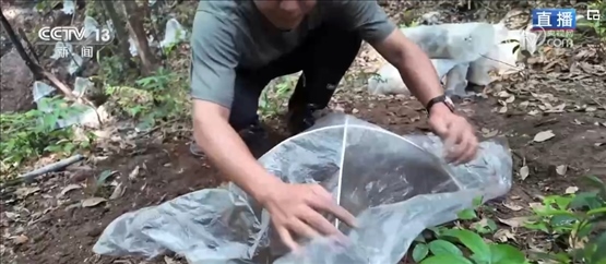 將菌棒種下后,還需要將靈芝保護(hù)起來。漫山遍野立著的一個(gè)個(gè)拱形小棚子就是靈芝的“保護(hù)罩”,在覆土種植后,工人們會(huì)搭建起小拱棚,將菌棒口包裹在內(nèi),可以有效防澇、防旱、防蟲,還能提高棚內(nèi)的二氧化碳濃度,讓生長出來的靈芝品質(zhì)更高。菌棒種下后,到7月就可以對(duì)第一撥靈芝進(jìn)行采收,到10月第二撥靈芝就已經(jīng)長成。在森林中種出的紫靈芝質(zhì)地堅(jiān)硬、形態(tài)飽滿。