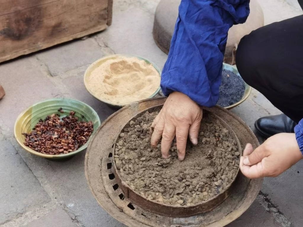 沖好針孔,便在磨石上反復銼尖。隨后倒入熱鍋里翻炒,再舀入一瓢水,針的剛性和硬度由此增加。接下來便輪到三大碗“大陽秘方”登場:白崖土粉末、松木炭和發(fā)酵后的豆豉,用于蒸針。“松木炭可以增加鋼針的含碳量,提升硬度;豆豉增加亮度;白崖土粉末作為分散劑讓針受熱均勻。這樣處理后可以保證針質(zhì)更堅硬又有光澤?!?/p>