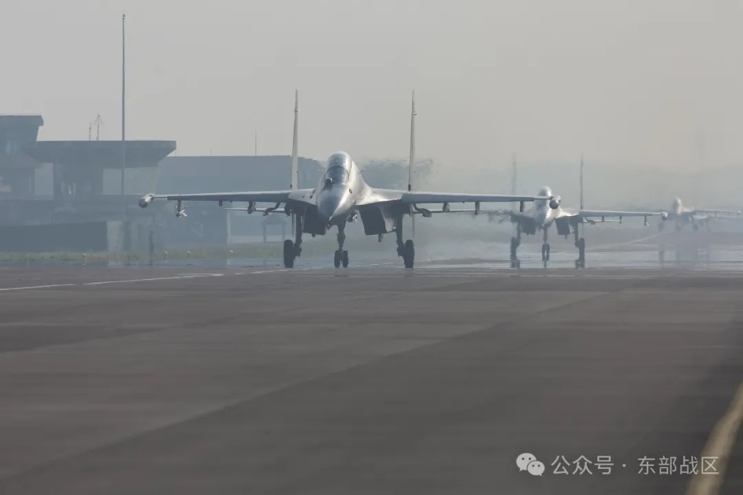 ▲戰(zhàn)機滑向起飛線。