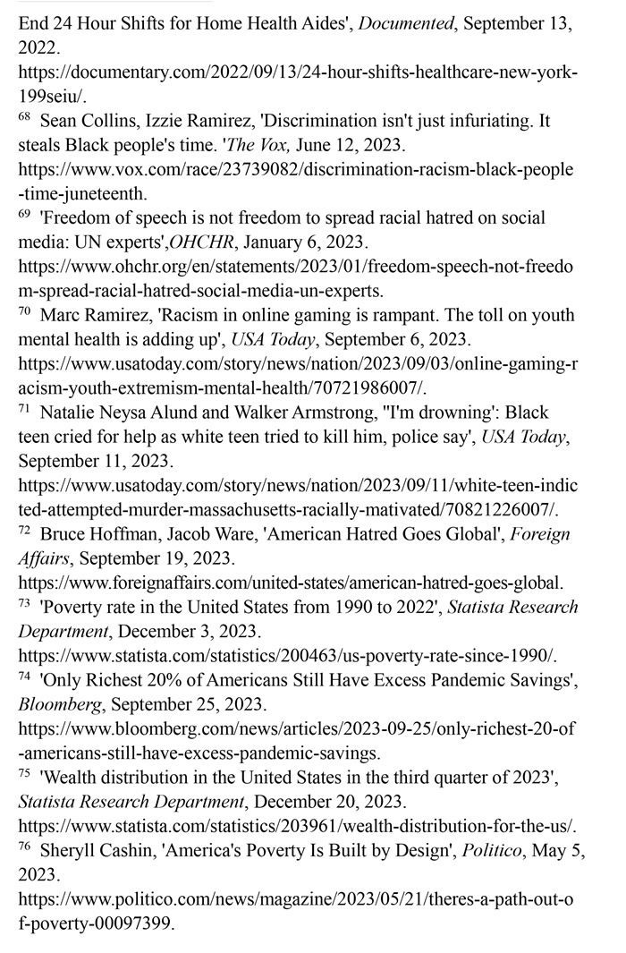 貧富鴻溝進(jìn)一步拉大。美國(guó)的貧富差距已經(jīng)達(dá)到1929年經(jīng)濟(jì)大危機(jī)以來最嚴(yán)重的程度。全球統(tǒng)計(jì)數(shù)據(jù)庫(kù)2023年11月3日公布的數(shù)據(jù)顯示,2022年美國(guó)的貧困率高達(dá)11.5%。(注73)美聯(lián)儲(chǔ)調(diào)查顯示,截至2023年6月,美國(guó)底層80%家庭的超額儲(chǔ)蓄已耗盡,但在最富有的20%家庭中,現(xiàn)金儲(chǔ)蓄仍比新冠疫情暴發(fā)時(shí)的水平高出約8%。(注74)2023年第三季度,美國(guó)總財(cái)富的66.6%由收入最高的10%的人擁有。相比之下,收入最低的50%的人只擁有總財(cái)富的2.6%。(注75)美國(guó)經(jīng)濟(jì)學(xué)家馬修·德斯孟德一針見血地指出,2023年,大多數(shù)美國(guó)人在辛勤工作,然而,富者越來越富,那些掙扎在社會(huì)底層的人受困于根深蒂固的貧困。美國(guó)社會(huì)的機(jī)會(huì)被囤積、社會(huì)流動(dòng)性降低,植根于三重制度性設(shè)計(jì):剝削窮人、補(bǔ)貼富人、階層隔離。(注76)