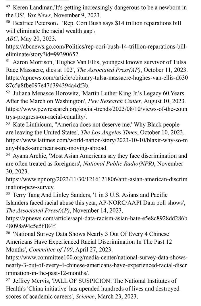 美國(guó)種族主義根深蒂固,種族歧視情勢(shì)嚴(yán)重。聯(lián)合國(guó)專家指出,針對(duì)非洲裔的系統(tǒng)性種族主義已經(jīng)滲透到美國(guó)警察部隊(duì)和刑事司法系統(tǒng)。由于醫(yī)療服務(wù)領(lǐng)域存在嚴(yán)重的種族歧視,非洲裔孕產(chǎn)婦死亡率幾乎是白人女性的3倍。近六成亞裔表示面臨種族歧視,針對(duì)華裔科學(xué)家的“中國(guó)行動(dòng)計(jì)劃”貽害深遠(yuǎn)。種族主義意識(shí)形態(tài)在美國(guó)社交媒體、音樂、游戲等多平臺(tái)惡性傳播并跨國(guó)溢出,成為極端種族主義的主要輸出國(guó)。