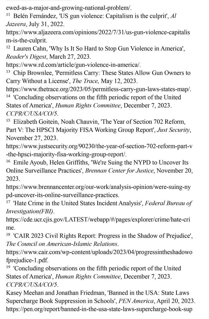 政府濫用權(quán)力監(jiān)控公民隱私。聯(lián)合國(guó)人權(quán)事務(wù)委員會(huì)指出,美國(guó)《涉外情報(bào)監(jiān)視法》第702條的范圍過于寬泛,該法不僅允許美國(guó)執(zhí)法人員監(jiān)視外國(guó)人的電子通信,執(zhí)法人員還可能利用法律漏洞在沒有搜查令的情況下獲取大量美國(guó)公民的通訊信息(即“后門搜查”),并且缺乏明確透明的監(jiān)督機(jī)制。(注14)美國(guó)眾議院情報(bào)委員會(huì)2023年11月16日發(fā)布的報(bào)告顯示,美國(guó)聯(lián)邦調(diào)查局將《涉外情報(bào)監(jiān)視法》第702條規(guī)定轉(zhuǎn)用于進(jìn)行國(guó)內(nèi)監(jiān)控,“廣泛而持續(xù)地”監(jiān)控國(guó)會(huì)議員、國(guó)會(huì)競(jìng)選活動(dòng)捐助者以及反種族主義抗議者的通訊。(注15)布倫南司法中心網(wǎng)站2023年11月20日?qǐng)?bào)道,十幾年來,紐約警察局濫用社交媒體從事非法活動(dòng),包括監(jiān)視公共集會(huì)、在沒有證據(jù)的情況下跟蹤公民個(gè)人及其聯(lián)系人等,而這些行為并未受到監(jiān)督和問責(zé)。(注16)