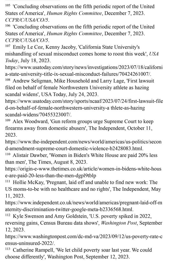 美國(guó)憲法迄今沒有禁止性別歧視的規(guī)定。職場(chǎng)性別歧視嚴(yán)重,男女收入差距擴(kuò)大。婦女的生命權(quán)和健康權(quán)保障不足。孕產(chǎn)婦死亡率持續(xù)高居發(fā)達(dá)國(guó)家之首,禁止墮胎嚴(yán)重?fù)p害婦女生殖權(quán)利和健康權(quán)。職場(chǎng)、校園等多領(lǐng)域的性暴力層出不窮。兒童的生存權(quán)和發(fā)展權(quán)堪憂。兒童貧困人口激增,大量?jī)和t(yī)療保險(xiǎn)被取消,兒童健康權(quán)受到嚴(yán)重威脅。