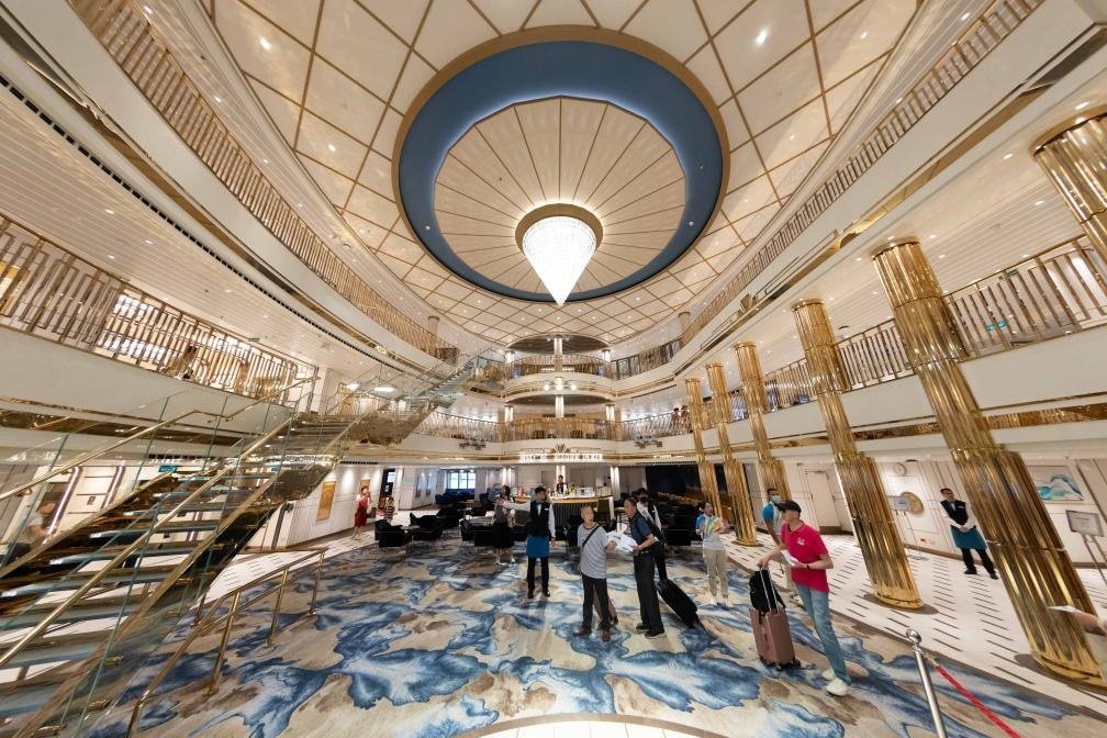 5月26日拍攝的國(guó)產(chǎn)大型郵輪“愛(ài)達(dá)·魔都號(hào)”愛(ài)達(dá)廣場(chǎng)。新華社記者 王翔 攝