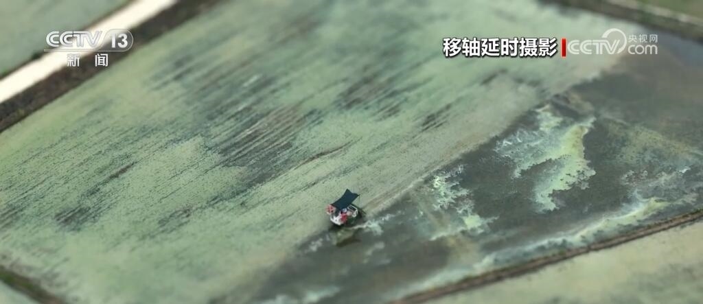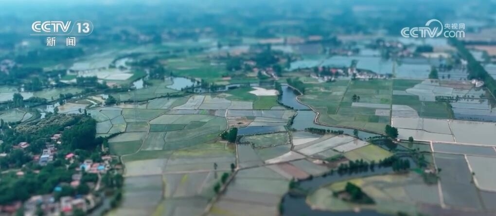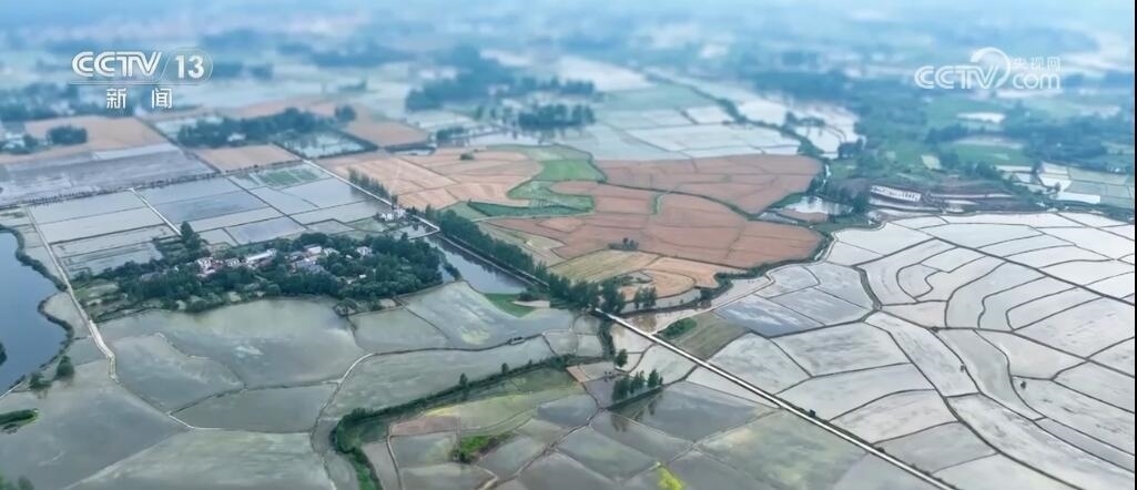 現(xiàn)在您看到的是河南信陽淮河以南的水稻插秧現(xiàn)場。插秧機在田間穿梭,一株株茁壯的秧苗被整齊有序地植入田間,一會兒工夫就插滿了整塊稻田??罩懈╊?,一臺臺插秧機在農(nóng)機手的操控下好似一把把畫刷,在稻田上輕輕暈染,繪就丹青。而同在信陽,淮河以北的麥田里,則是金色的麥浪翻滾起伏,收割機馳騁田間,飽滿的麥穗被卷入機艙,經(jīng)過收割、脫粒,顆粒歸倉。