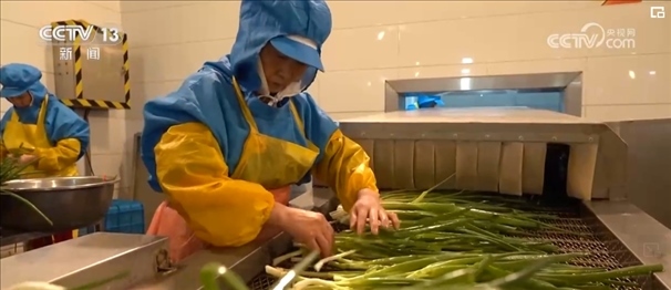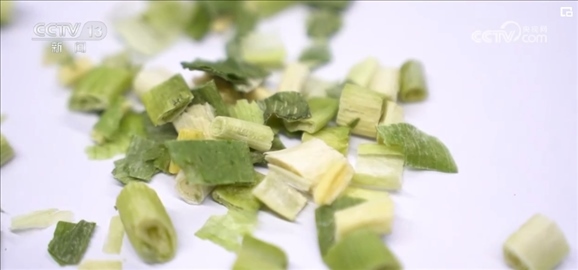 香蔥被運(yùn)輸?shù)疆?dāng)?shù)氐募庸S后,經(jīng)過洗、理、切、分揀裝盤,然后就開始了高科技的“蛻變”之旅。工人先把香蔥放入冷庫冷凍數(shù)小時,然后立即抽真空“升華”干燥,經(jīng)過48小時左右的一系列工序后,一棵香蔥就變成了脫水蔬菜。留學(xué)回國創(chuàng)業(yè)的王一盛介紹,與過去使用的熱風(fēng)干燥技術(shù)相比,這種新技術(shù)不僅讓垛田香蔥最大程度鎖鮮,價格也比過去增加了五六倍。