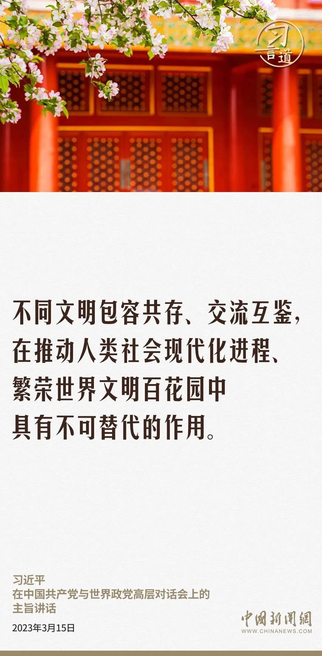 “一花獨(dú)放不是春,百花齊放春滿園?!绷?xí)近平總書記高度重視不同文明之間的交流互鑒,多次作出重要論述。