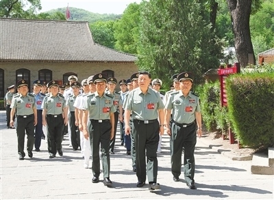 6月17日至19日,中央軍委政治工作會議在陜西延安召開。中共中央總書記、國家主席、中央軍委主席習(xí)近平出席會議并發(fā)表重要講話。這是17日下午,習(xí)近平帶領(lǐng)軍委一班人和各部門各單位主要負(fù)責(zé)同志瞻仰王家坪革命舊址。新華社記者 李 剛攝