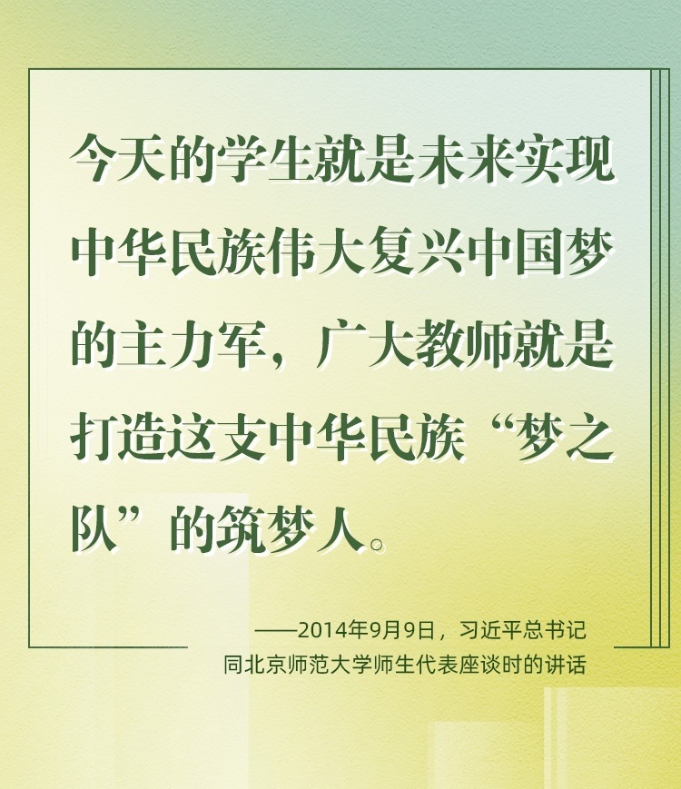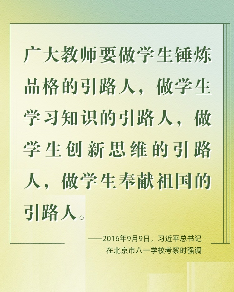 他們帶領(lǐng)學(xué)生前行,更新舊知、開掘新知、探索未知;他們肩負(fù)光榮使命,為黨育人、為國(guó)育才、為民育未來。守教育報(bào)國(guó)初心、擔(dān)立德樹人使命、圓民族復(fù)興之夢(mèng),建設(shè)社會(huì)主義現(xiàn)代化強(qiáng)國(guó)之路上,教育家精神自當(dāng)念茲在茲、代代傳承、光芒永綻。