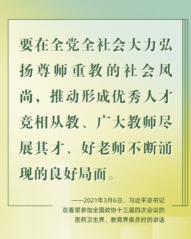 因?yàn)闊釔郏砸簧鷪?jiān)持。老師是中華民族“夢(mèng)之隊(duì)”的筑夢(mèng)人,是新時(shí)代的“大先生”。從傳播知識(shí)、啟迪思想、無私奉獻(xiàn),到“讓每個(gè)人都有實(shí)現(xiàn)夢(mèng)想的機(jī)會(huì)”;從教書到育人,從個(gè)人到家國(guó),從小我到大我,“培養(yǎng)德智體美勞全面發(fā)展的社會(huì)主義建設(shè)者和接班人”,老師,已然是喚起一代代學(xué)子追隨先輩、培養(yǎng)家國(guó)情懷、櫛風(fēng)沐雨、砥礪前行的力量。