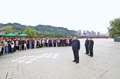 9月10日至13日,中共中央總書記、國家主席、中央軍委主席習近平在甘肅考察。這是11日下午,習近平在黃河蘭州中山橋段考察時,同在場的干部群眾親切交流。新華社記者 王 曄攝