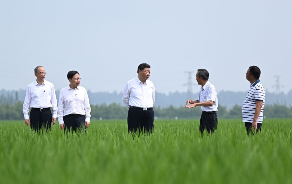 2022年6月8日上午,習(xí)近平在四川眉山市東坡區(qū)太和鎮(zhèn)永豐村高標(biāo)準(zhǔn)水稻種植基地考察,了解水稻試驗(yàn)育種和種植推廣情況。習(xí)近平強(qiáng)調(diào):推進(jìn)農(nóng)業(yè)現(xiàn)代化,既要靠農(nóng)業(yè)專家,也要靠廣大農(nóng)民。要加強(qiáng)現(xiàn)代農(nóng)業(yè)科技推廣應(yīng)用和技術(shù)培訓(xùn),把種糧大戶組織起來,積極發(fā)展綠色農(nóng)業(yè)、生態(tài)農(nóng)業(yè)、高效農(nóng)業(yè)。我們有信心、有底氣把中國(guó)人的飯碗牢牢端在自己手中。