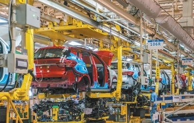 科技創(chuàng)新上汽臨港基地的柔性生產(chǎn)線。尚 清攝(人民視覺)