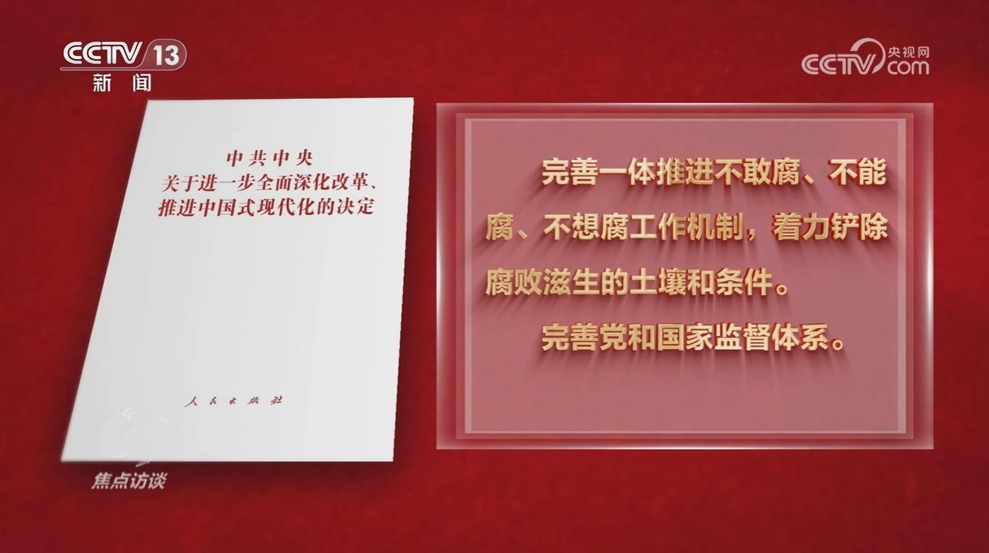 如何提高黨對(duì)進(jìn)一步全面深化改革、推進(jìn)中國(guó)式現(xiàn)代化的領(lǐng)導(dǎo)水平,《決定》部署的第三方面重點(diǎn)是,深入推進(jìn)黨風(fēng)廉政建設(shè)和反腐敗斗爭(zhēng)。