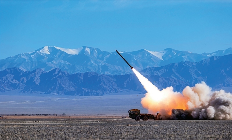 西部戰(zhàn)區(qū)空軍航空兵某旅緊貼任務(wù)需要,堅(jiān)持不懈大抓實(shí)戰(zhàn)化軍事訓(xùn)練,加強(qiáng)重難點(diǎn)課目專攻精練。圖為2023年10月該旅在訓(xùn)練中發(fā)射火箭彈。 喻澤琪/攝
