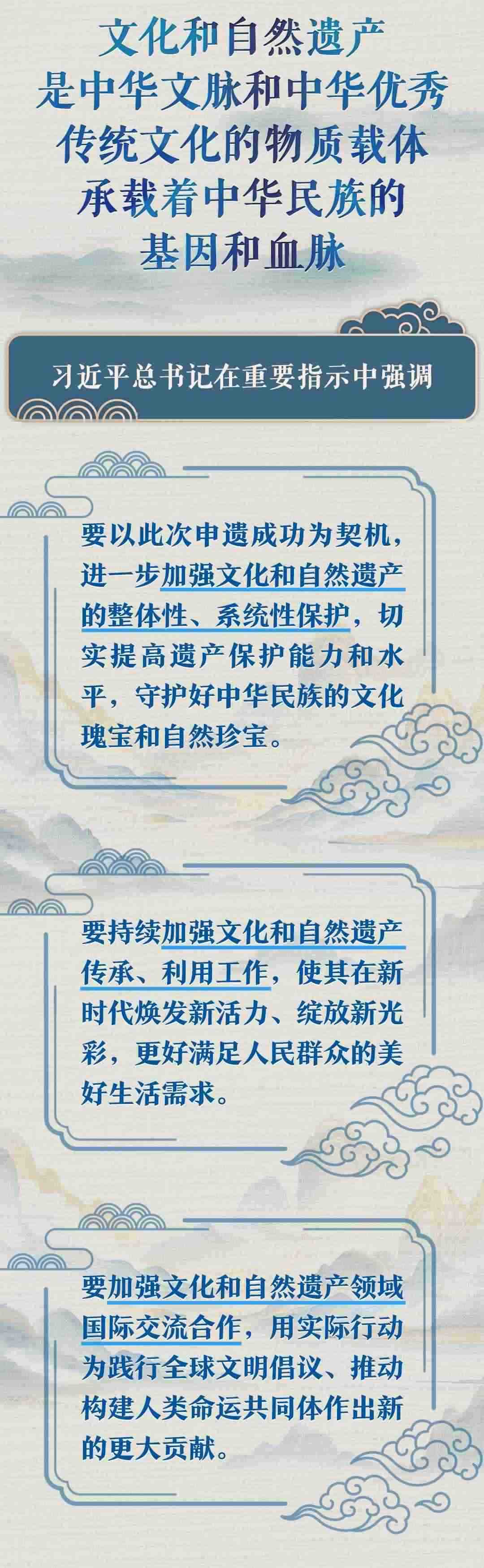 文化遺產(chǎn)體現(xiàn)了中華民族旺盛的生命力和創(chuàng)造力,自然遺產(chǎn)昭示了神奇的自然造化同中華民族的和諧依存關(guān)系。習(xí)近平總書記一直以來高度重視文化和自然遺產(chǎn)保護(hù)傳承利用工作,近日專門就此作出重要指示強(qiáng)調(diào),守護(hù)好中華民族的文化瑰寶和自然珍寶,讓文化和自然遺產(chǎn)在新時(shí)代煥發(fā)新活力綻放新光彩。讓我們一同學(xué)習(xí)。