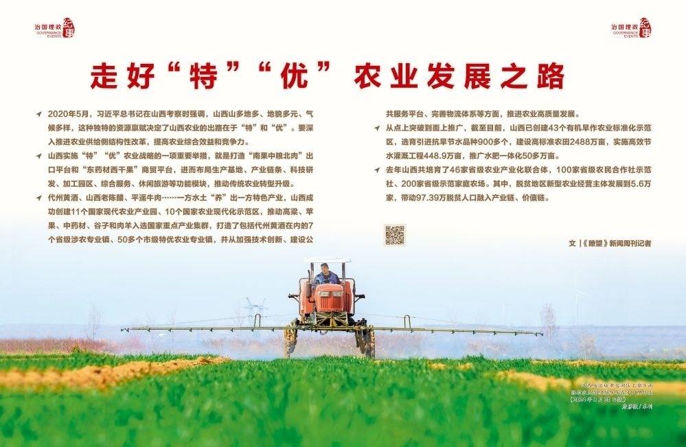 2020年5月,習近平總書記在山西考察時強調,山西山多地多、地貌多元、氣候多樣,這種獨特的資源稟賦決定了山西農(nóng)業(yè)的出路在于“特”和“優(yōu)”。要深入推進農(nóng)業(yè)供給側結構性改革,提高農(nóng)業(yè)綜合效益和競爭力。