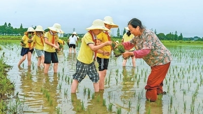 知農(nóng)事,曉農(nóng)情。鄒區(qū)鎮(zhèn)殷村村黨委書記陳禮斌在村里的五谷廣場為同學(xué)們講解:“大家看這5個(gè)字:稻、麥、黍、菽、稷。黍就是黃米,可以做油糕;稷就是高粱或小米,可以釀酒;菽就是各種豆類?!蓖瑢W(xué)們聽著講解,不時(shí)點(diǎn)頭。