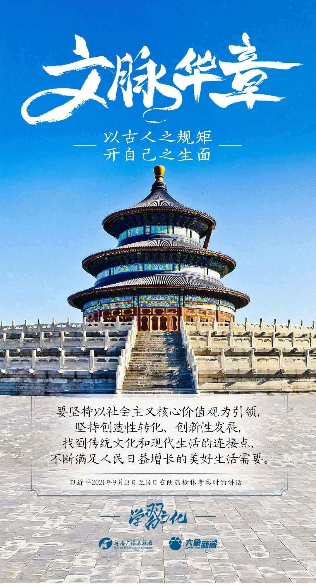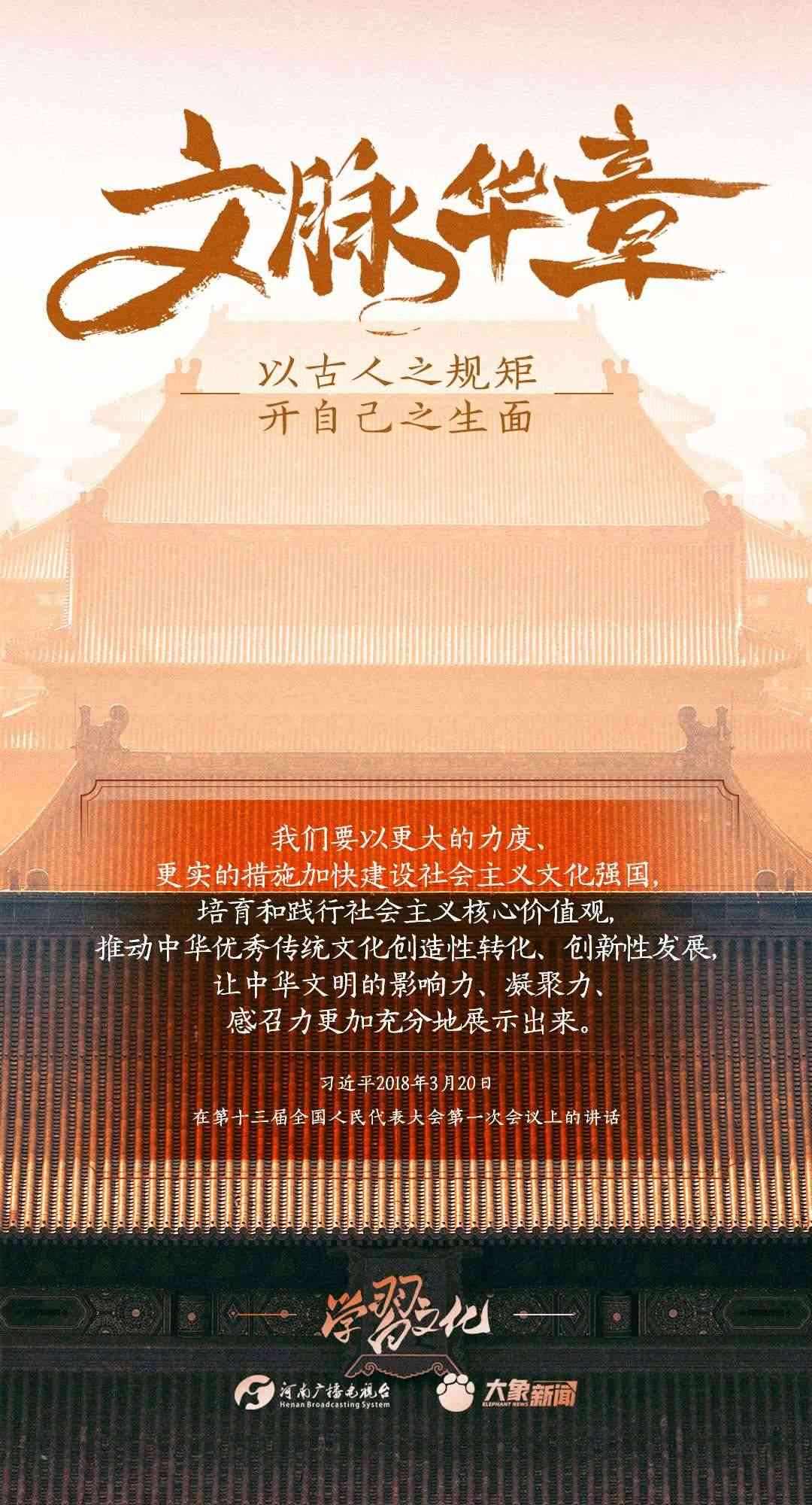 2014年10月15日,習(xí)近平總書(shū)記在文藝工作座談會(huì)上的重要講話(huà)指出:傳承中華文化,絕不是簡(jiǎn)單復(fù)古,也不是盲目排外,而是古為今用、洋為中用,辯證取舍、推陳出新,摒棄消極因素,繼承積極思想,“以古人之規(guī)矩,開(kāi)自己之生面”,實(shí)現(xiàn)中華文化的創(chuàng)造性轉(zhuǎn)化和創(chuàng)新性發(fā)展。