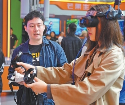 2024中國(guó)新媒體技術(shù)展上,參觀者在進(jìn)行AR互動(dòng)體驗(yàn)。人民網(wǎng)記者 吳茜薇攝