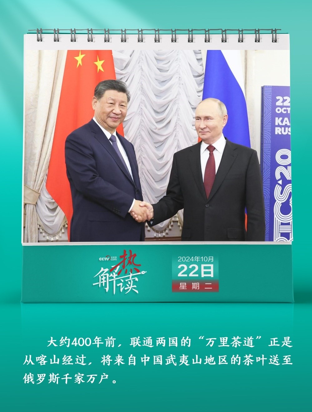 10月22日,習(xí)近平主席在俄羅斯喀山克里姆林宮同普京總統(tǒng)舉行年內(nèi)第三次會晤。在會談中,習(xí)主席提到一條名為“萬里茶道”的古老商道。