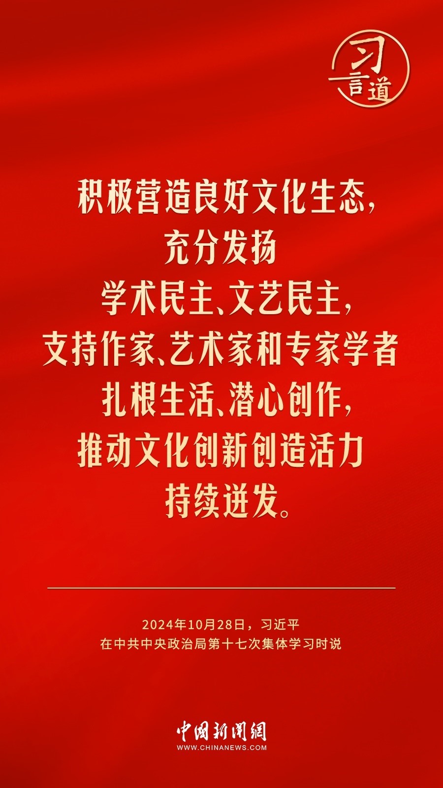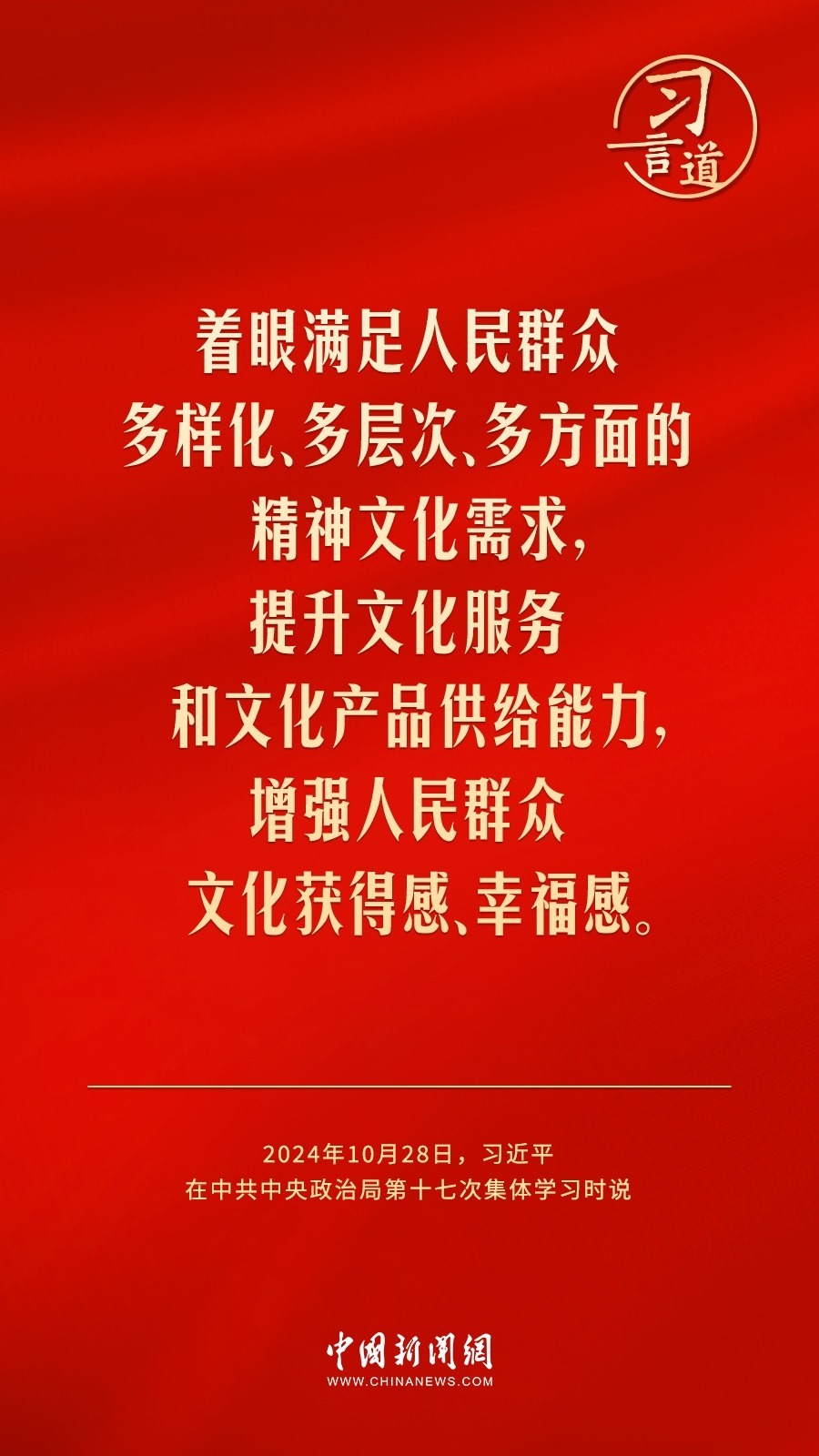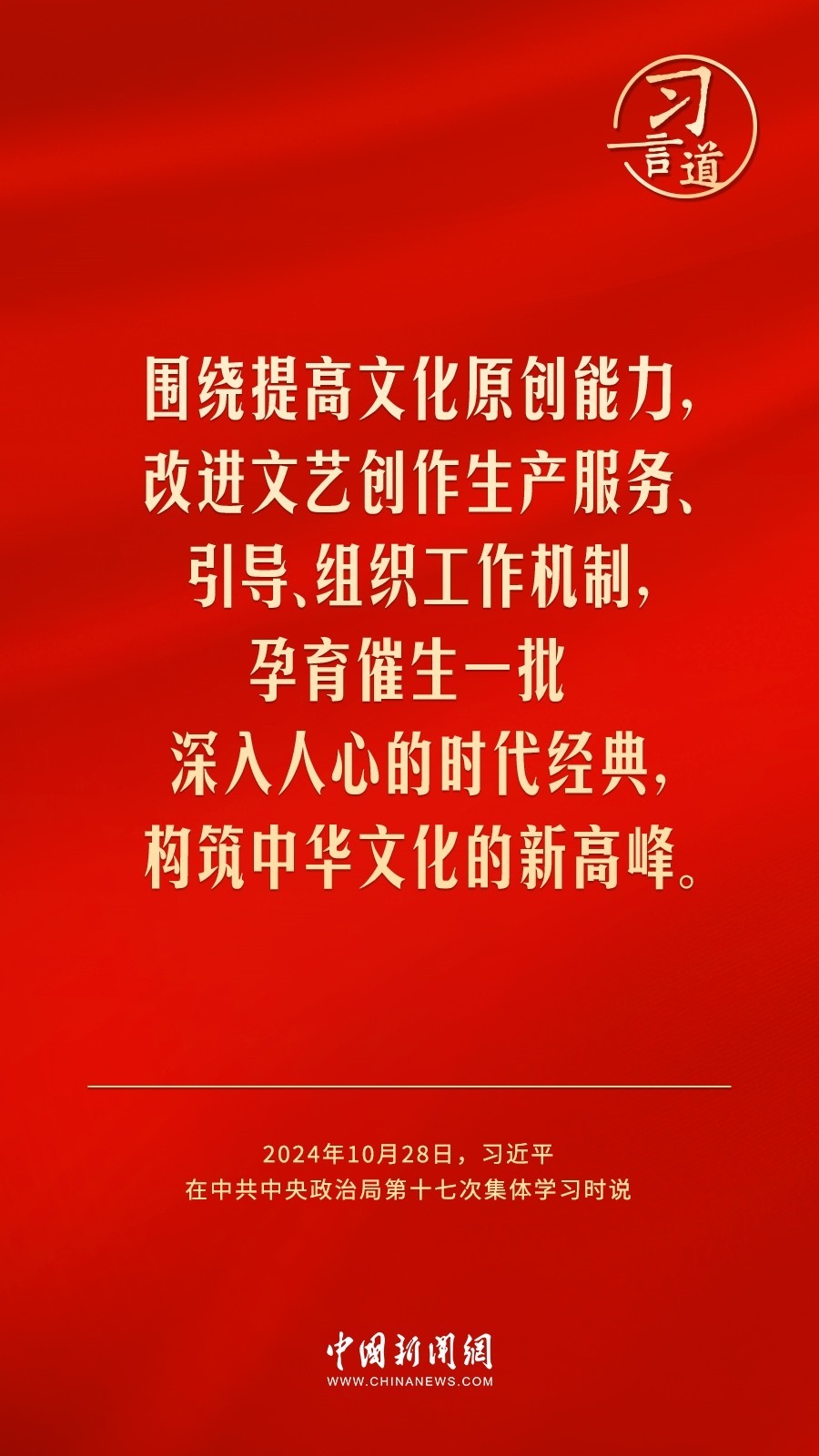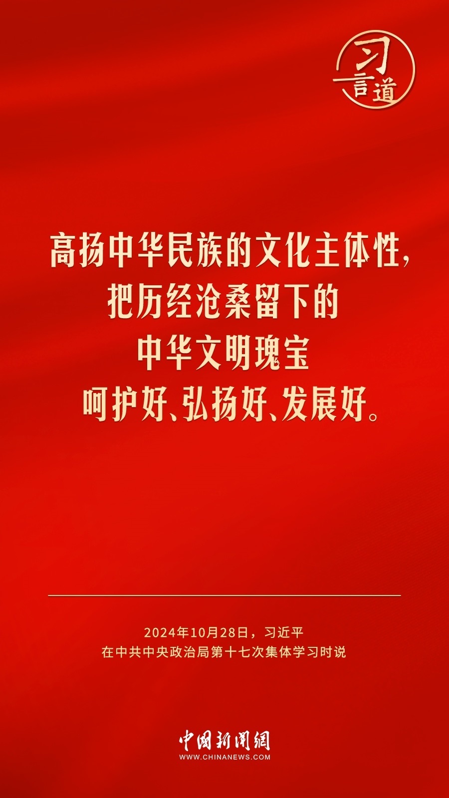 中共中央政治局10月28日下午就建設(shè)文化強(qiáng)國進(jìn)行第十七次集體學(xué)習(xí)。中共中央總書記習(xí)近平在主持學(xué)習(xí)時強(qiáng)調(diào)——