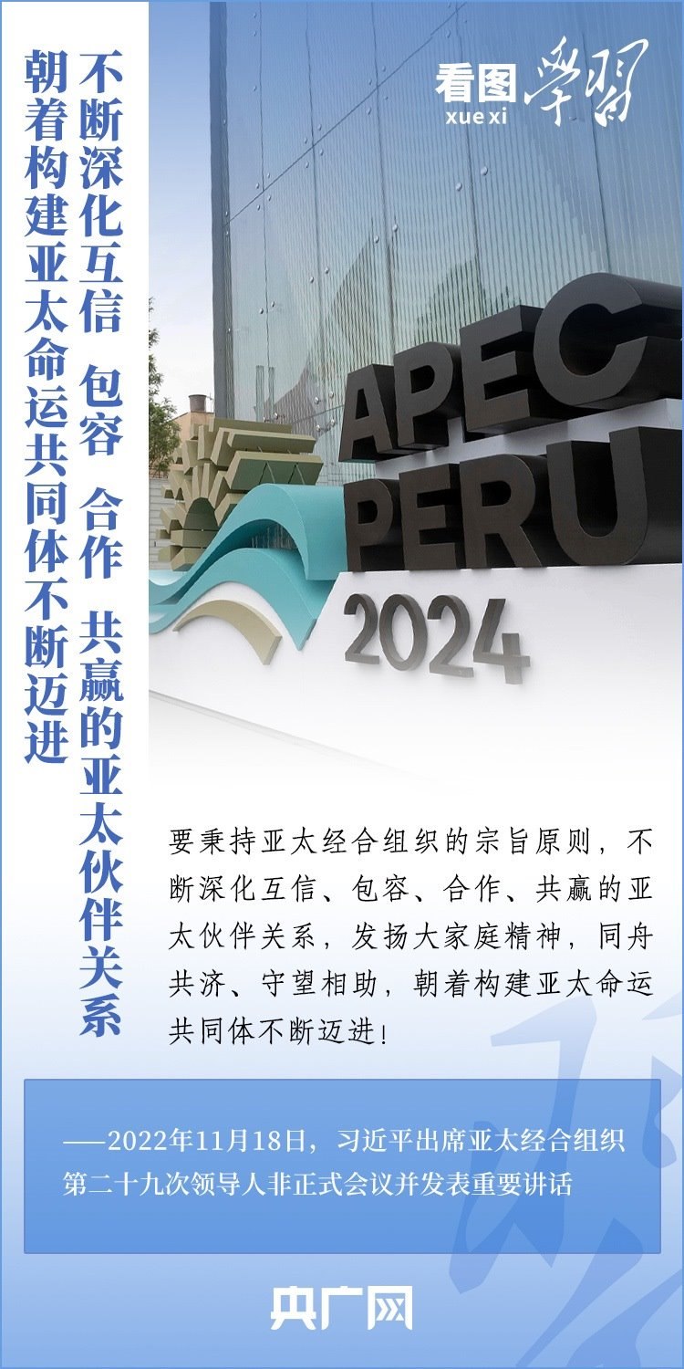 亞太經(jīng)合組織(APEC)是亞太地區(qū)層級最高、領(lǐng)域最廣、最具影響力的經(jīng)濟合作機制。11月13日至17日,習(xí)近平主席赴利馬出席亞太經(jīng)合組織第三十一次領(lǐng)導(dǎo)人非正式會議并對秘魯進行國事訪問。從“亞太夢想”到“APEC方式”,從“亞太伙伴關(guān)系”到“亞太命運共同體”……2013年以來,習(xí)近平主席出席或主持歷次APEC領(lǐng)導(dǎo)人非正式會議,就全球及地區(qū)形勢、亞太區(qū)域合作、APEC未來發(fā)展等一系列重大問題闡釋中國主張,推動不斷深化互信、包容、合作、共贏的亞太伙伴關(guān)系,建設(shè)開放、活力、強韌、和平的亞太共同體。一起來學(xué)習(xí)!