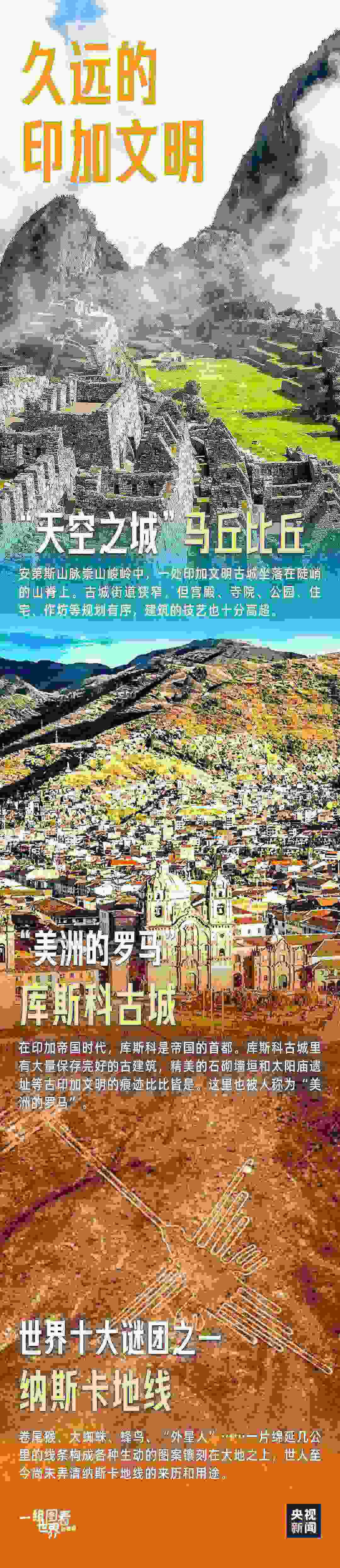 站在世界地圖前,從中國(guó)大陸東岸向著東南,跨赤道、越大洋來到南美洲西部,有一個(gè)版圖如同豎起雙耳的美洲豹的國(guó)家,那就是秘魯。這個(gè)國(guó)家融合了印加文明與西班牙風(fēng)情,以其壯麗的馬丘比丘和納斯卡地畫吸引著世界的目光。這里不僅有古老的文明故事,還有庫(kù)斯科的歷史韻味和的的喀喀湖的自然奇觀,等待著你來探索。