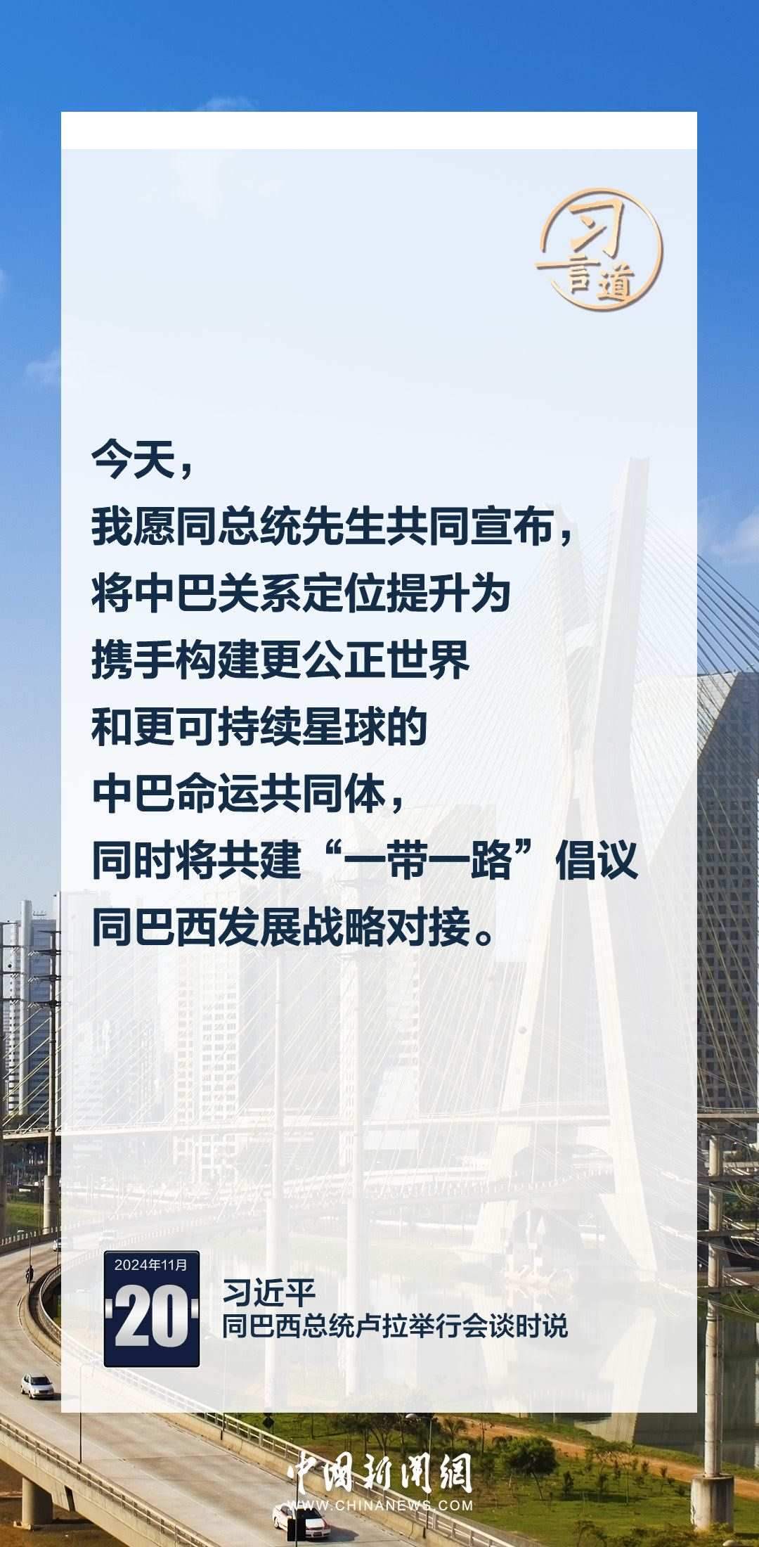 當?shù)貢r間11月20日,中國國家主席習近平在巴西利亞總統(tǒng)官邸同巴西總統(tǒng)盧拉舉行會談。習近平指出——