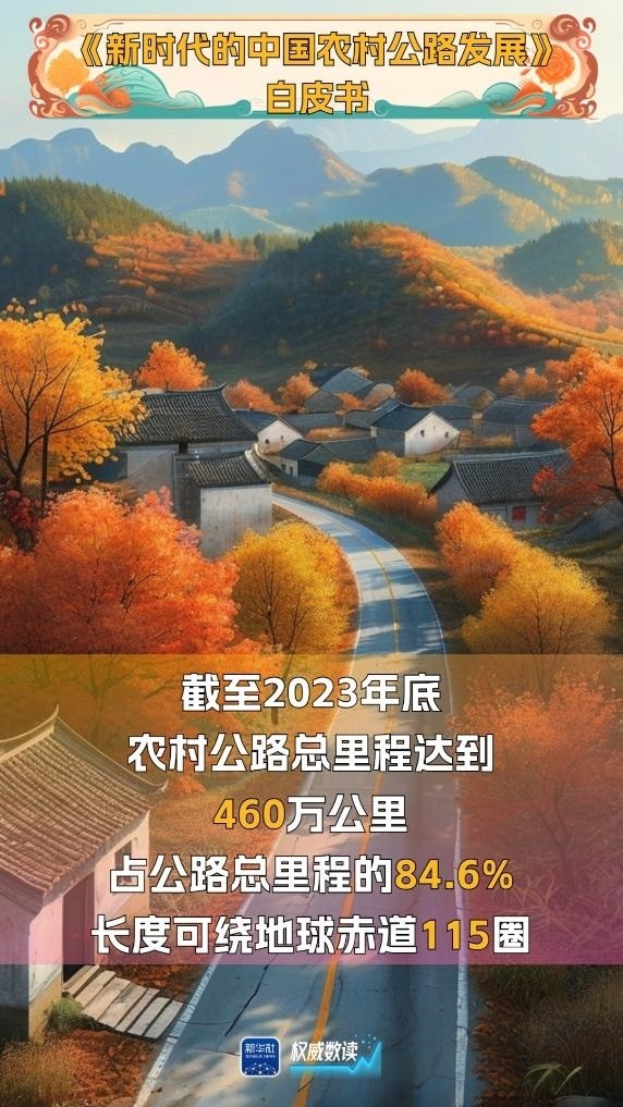 國務院新聞辦公室29日發(fā)布的《新時代的中國農(nóng)村公路發(fā)展》白皮書顯示,截至2023年底,我國農(nóng)村公路總里程增長到460萬公里,占公路總里程的84.6%,目前已形成了“外通內(nèi)聯(lián)、通村暢鄉(xiāng)、客車到村、安全便捷”的農(nóng)村交通運輸網(wǎng)絡(luò),帶動農(nóng)村地區(qū)整體面貌發(fā)生了巨大變化。